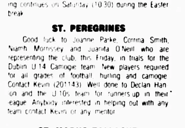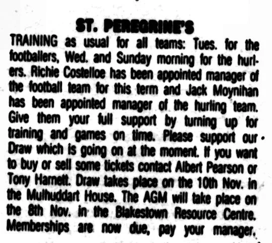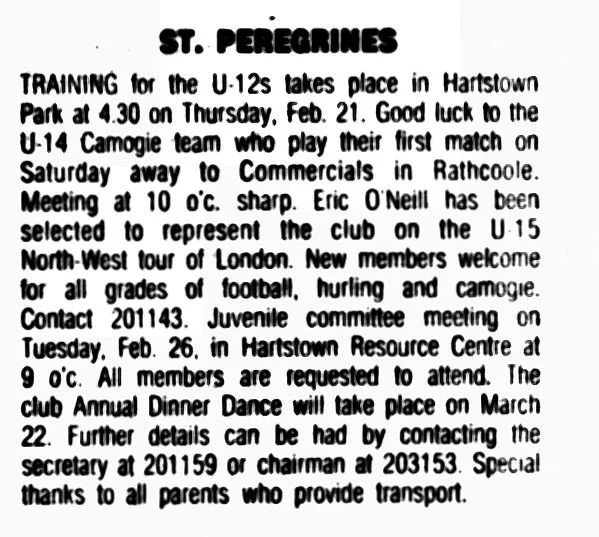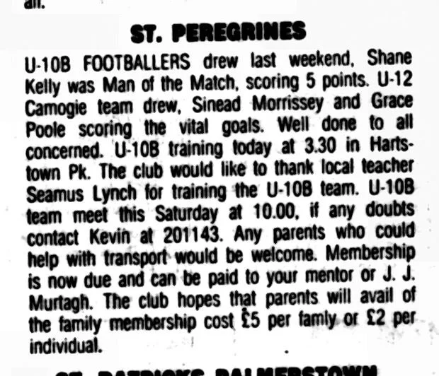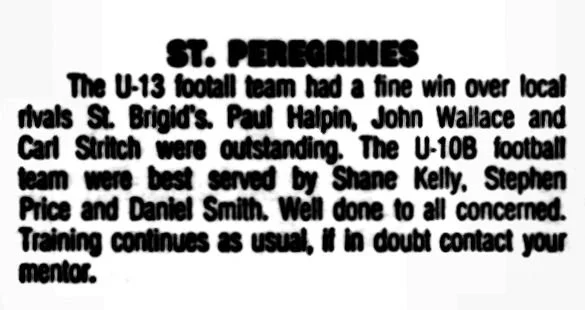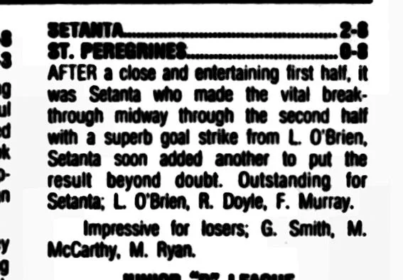 23/10/1991: Match Report : U10s St Peregrines 7-2 vs St Oliver Plunketts