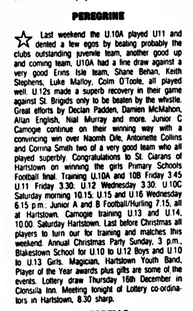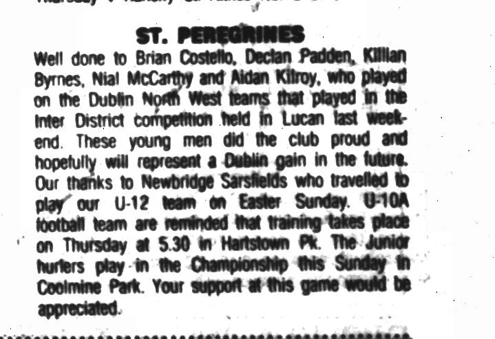 29/09/1993 - Match Report U10 Cβs vs Na Fianna